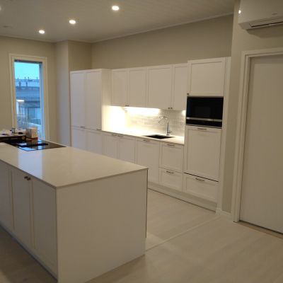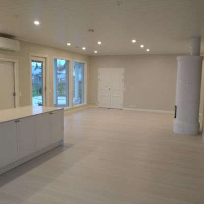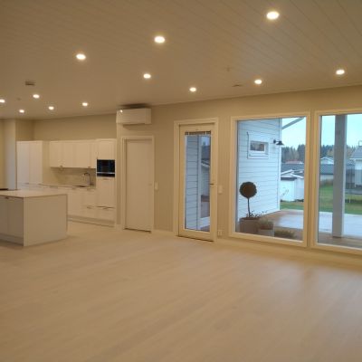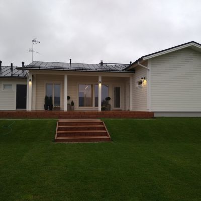 Kaunis omakotitalo Karhunmäessä rakennettiin suoraan asiakkaalle.